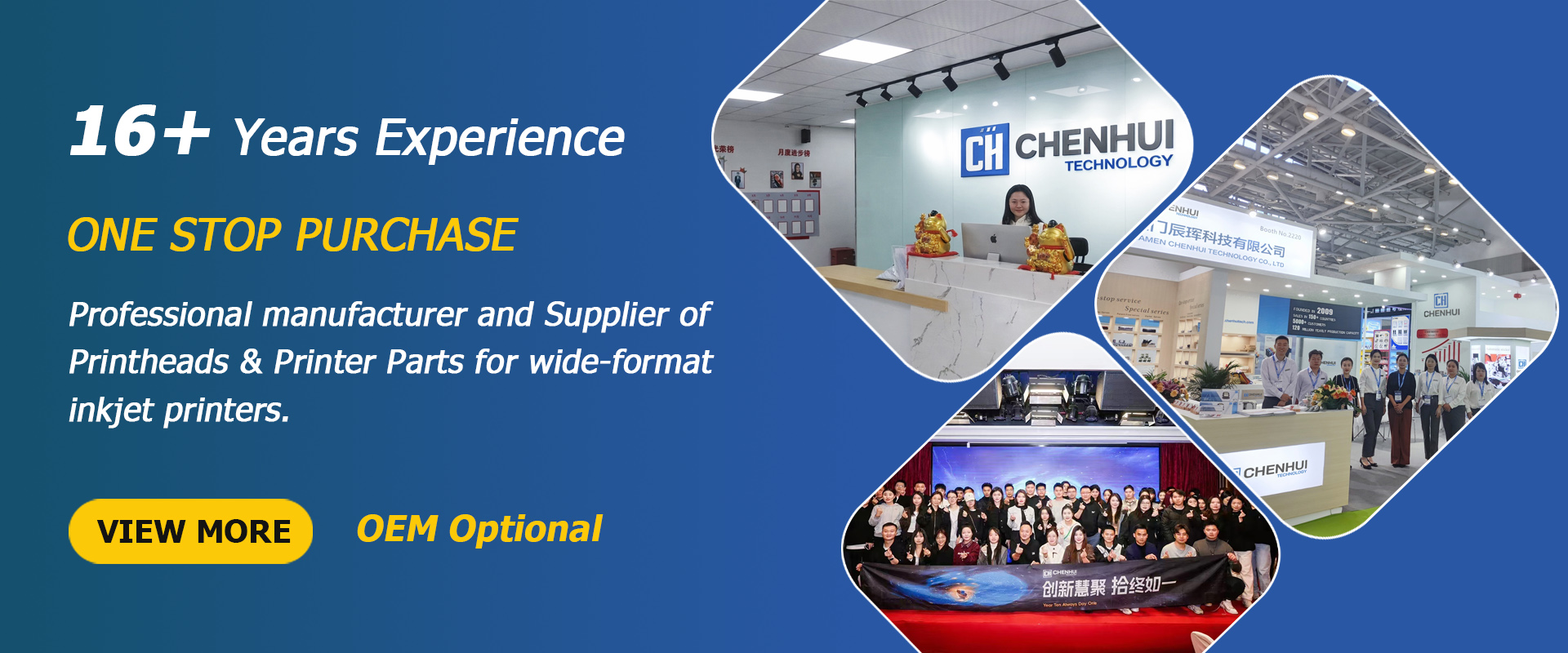 Established in 2009, Xiamen Chenhui Technology Co., Ltd is a professional manufacturer and supplier of digital inkjet printer parts, engaged in R&D, manufacturing, marketing, and service. Our main products include printheads, ink pumps, sub tanks, ink tubes, filters, solenoid valves, manual valves, liquid level sensors, connectors, printhead tissue and cleaning cloth, and printhead cleaning sticks. They are widely used in inkjet printing, advertising, pressing, chemical experiments, water treatment, etc.