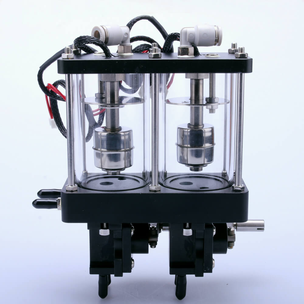 Its integrated valve system with PTFE sealing rings prevents leakage and improves durability. Anodized top and base (optional polymer version for water-based inks) offer a clean, refined finish. Easy valve switching makes ink feeding and cleaning simple and efficient.