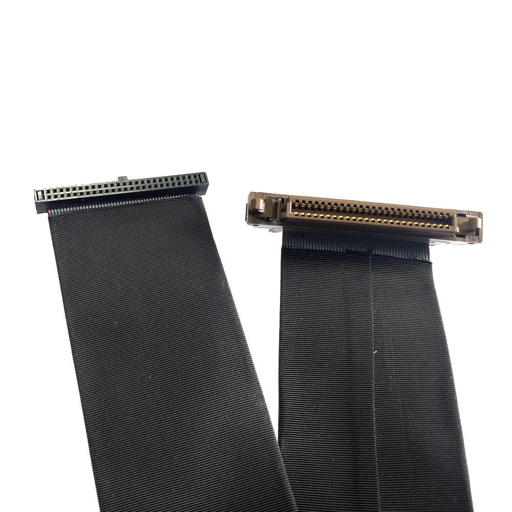 This Konica 512i/1024 printhead cable is suitable for printers using Konica 512i or Konica 1024 printheads. It has 50 pins and is 55 cm long. This cable has different connectors at both ends, a brown one with a latching system, and a black one. There are multiple models of printhead cables for Konica 1024/512i printheads. Please double-check your requirements before ordering: